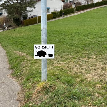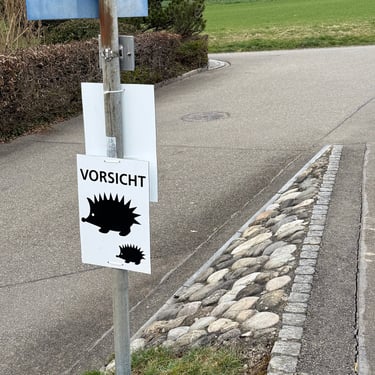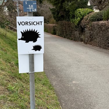 Ich hänge jeweils im Frühling Plakate auf, in der Hoffnung, Autofahrer achten besser auf unsere kleinen, stacheligen Freunde, die nachts unterwegs sind. Leider kugeln sich diese bei Gefahr ein, anstatt schnell davonzulaufen, was viele nicht wissen.